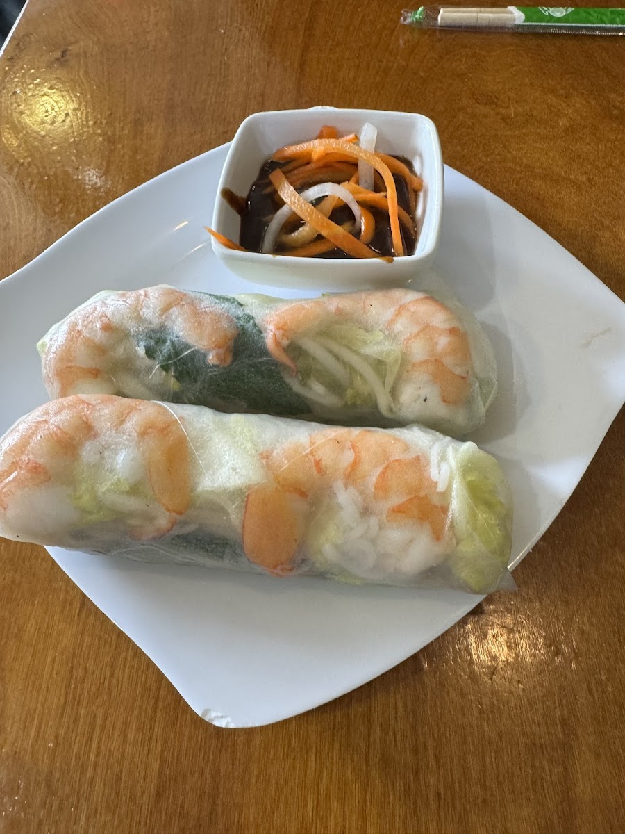The menu also features classic Vietnamese dishes like bun rieu and rice with pork chop. The bun rieu is particularly impressive, loaded with a variety of toppings such as blood cakes, pork slices, meatballs, and cooked meats. It’s a flavorful and hearty dish that showcases the depth of traditional Vietnamese cooking. The spring rolls with peanut dip are a popular appetizer, offering a delightful crunch and a creamy, savory dip that complements the freshness of the rolls.